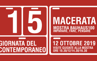 I musei civici di Macerata aderiscono alla Giornata del Contemporaneo. Sabato 12 ottobre, dalle 16.30 alle 18 ingresso gratuito alla mostra "Bauhaus 100: imparare, fare, pensare" e visite guidate gratuite alle 10.30, 12, 14,30 e 16.30. Per informazioni e prenotazioni Palazzo Buonaccorsi, 0733 256361, macerata@sistemamuseo.it. [...]