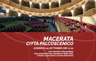 MACERATA, CITTÀ PALCOSCENICO Visita guidata del Teatro Lauro Rossi e dello Sferisterio Domenica 29 settembre, alle 17.00, è in programma una speciale visita guidata alla scoperta di due capolavori della città di Macerata, il Teatro Lauro Rossi e l’Arena Sferisterio. Dal bellissimo teatro settecentesco alla [...]