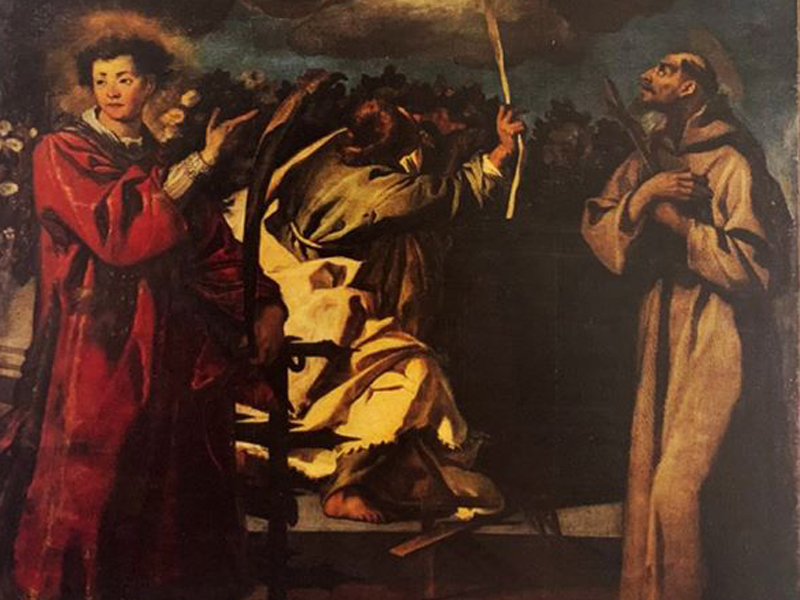“Il dipinto datato 1604 e firmato Andrea Boscoli, pittore fiorentino attivo nelle Marche dal 1600 al 1605, proviene dall’ex chiesa di San Lorenzo a Macerata. La pala raffigura la Madonna colta nell’atto di tendere la sacra cintola (prova della sua assunzione in cielo anche nell’essenza corporale) a san Tommaso, alla presenza dei santi Lorenzo, titolare della chiesa, e Francesco, titolare dell’ordine monastico di appartenenza delle committenti. Il dipinto maceratese, per l’agilità narrativa e per la tavolozza, segna nell’operato marchigiano di Boscoli un’evoluzione stilistica antesignana del Barocco.” G. Pascucci